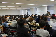 新規事業プランコンテスト「ジギョつく」の様子。幹部や社員を前に、新規事業のプレゼンを行う。「大型の買収よりも、小さく生んで大きく育てる事業戦略」、「人材の採用、育成、社内の活性化を強化」といった経営方針を具現化する制度の一つだ。